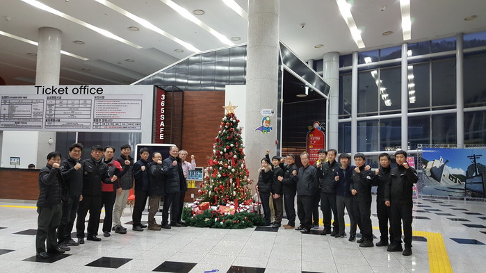 ▲겨울 시즌 손님맞이 준비중인 365세이프타운 김성오관장과 직원들. |