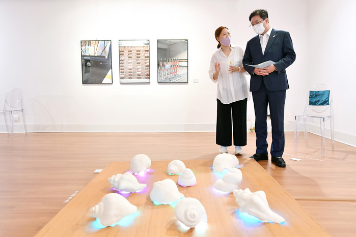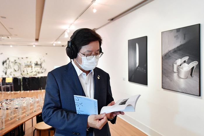 | ▲염태영 수원시장이 작품을 관람하고 있다. 수원시 제공 |