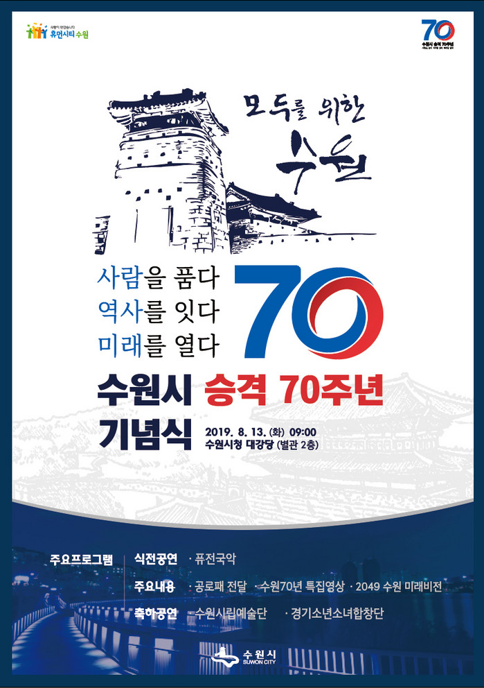 [로컬세계 고용주 기자]시 승격 70주년을 맞은 경기 수원시가 시민이 중심이 되는 다양한 기념행사를 마련한다.