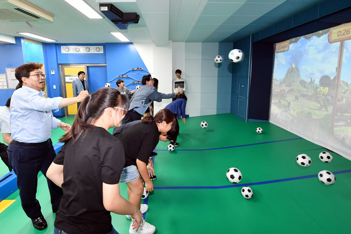 가상현실 스포츠실 설치·보급 사업은 관내 학교의 유휴 교실을 활용해 VR 기술을 기반으로 한 체험형 스포츠 공간을 조성하는 것이다. 미세먼지, 폭염 등 날씨 영향을 받지 않는 안전한 공간에서 체육활동을 즐길 수 있다.