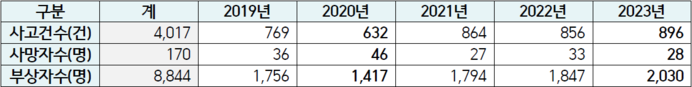 ▲최근 5년간(2019~2023년) 여름 휴가철(7~8월) 고속도로 교통사고. 도로교통공단 제공 |