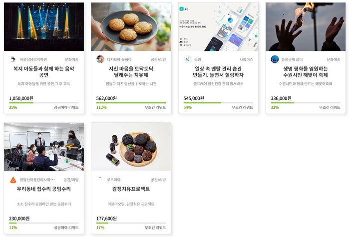 후원형 프로젝트는 ▲복지아동들과 함께하는 음악 공연 ▲지친 마음을 토닥토닥 달래주는 치유제 ▲일상 속 멘탈 관리 습관 만들기, 놀면서 힐링하자 ▲생명 평화를 염원하는 수원시민 해맞이 축제 ▲우리동네 집수리 공임수리 ▲감정치유 프로젝트 등 6개다.