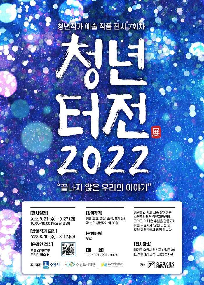 수원도시재단 청년지원센터가 주관하는 이번 전시회는 청년 작가들의 역량을 강화해 청년 문화를 활성화하고, 시민들에게 문화를 향유할 기회를 제공하는 행사다.