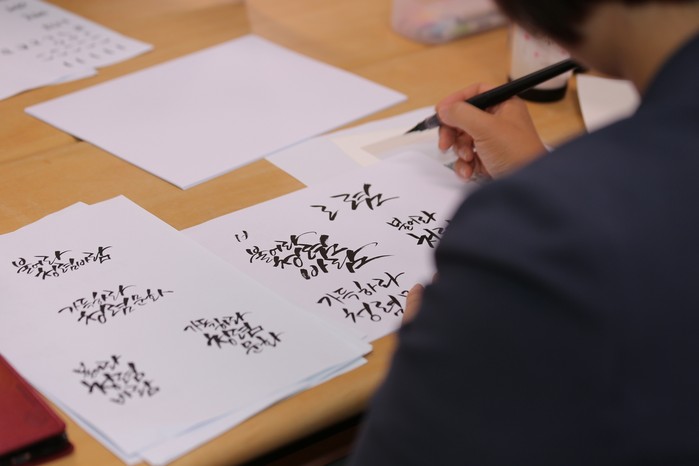 | ▲캘리그래피를 하고 있는 공직자들.(경기북부청 제공) |