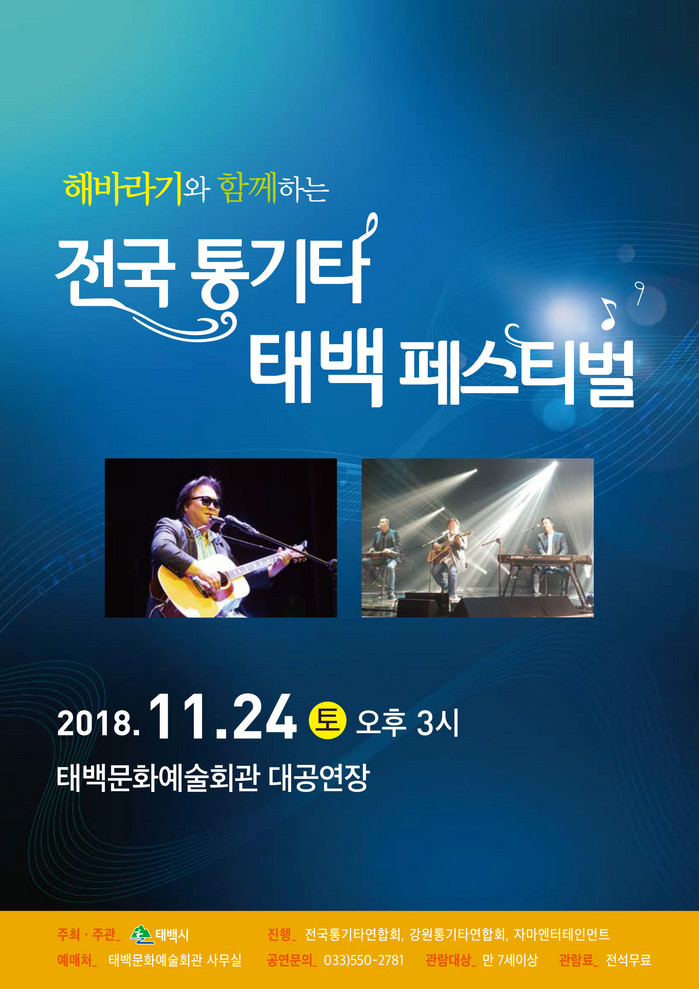 이번 공연은 가수 해바라기와 전국에서 온 10개의 통기타 팀이 깊어가는 가을을 감미로운 통기타 선율로 적셔 주는 감성 충전 공연으로 펼쳐진다.