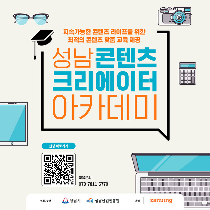 시는 오는 8월 31일까지 ‘성남 콘텐츠 크리에이터 아카데미 무료 교육생’ 25명을 모집한다.