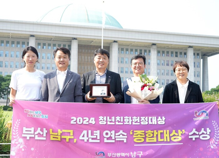 [로컬세계 부산=맹화찬 기자]부산 남구는 지난 7일 국회의원회관 제1소회의실에서 열린 제8회 대한민국 청년의 날 기념식에서 2024년 청년친화헌정대상 우수 기초자치단체 부문‘종합대상’을 수상했다.