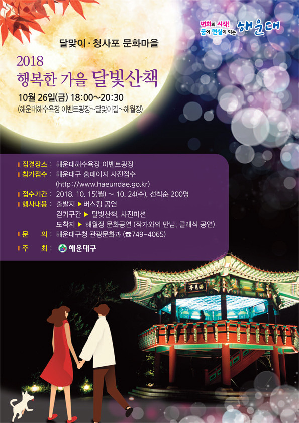 구 관계자는 "깊어가는 가을, 이번 행사를 통해 달맞이 길의 숨은 매력을 흠뻑 느껴보기를 바란다"고 말했다.