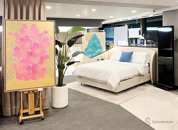 소노시즌은 이번 전시를 기념해 소노시즌 청담점 방문객 대상 프로모션도 다양하게 전개한다. 매장에 비치된 전시 리플릿에 소노시즌과 이윤정 작가를 응원하는 메시지를 전하는 이벤트에 참여하면 리놀럭스 골프 양말을 증정한다. 또 소노시즌의 메모리폼 베개와 베딩, 소품류 전 품목을 최대 50% 할인하고 웨딩·이사 인증 시 5% 추가 할인 혜택도 제공한다.