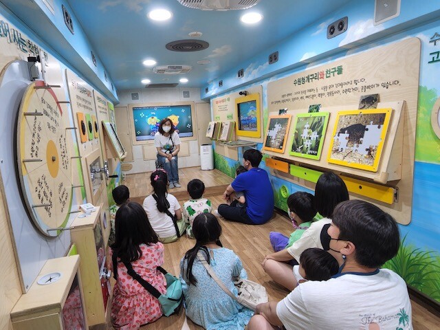 | ▲수원이 환경교실 버스를 체험하고 있다. |