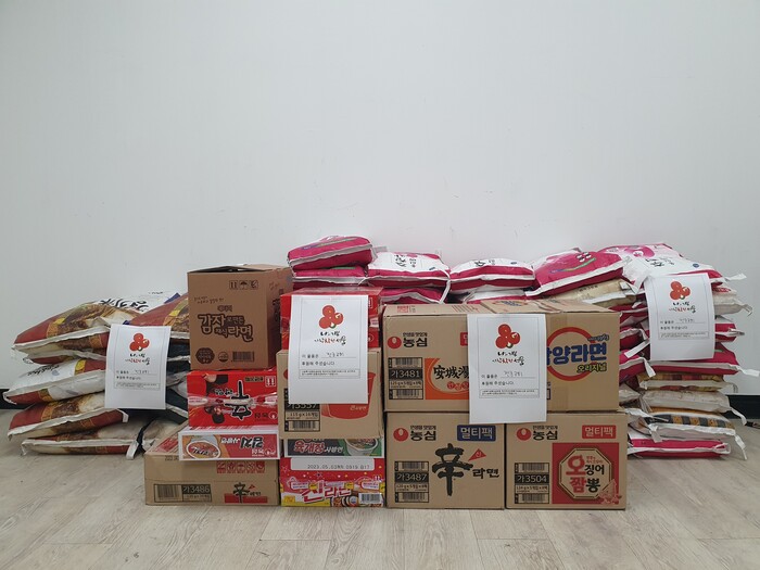 쌀 610㎏과 라면 16박스는 홀로 어르신을 돕기 위해 전궁교회 신도들이 십시일반으로 모았다. 전궁교회는 지난해에도 쌀 540㎏과 라면 7박스로 이웃사랑을 실천했다.