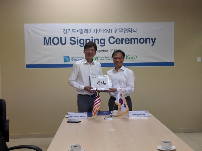 류인권 경기도 농정해양국장은 현지시각 20일 10시 말레이시아 현지에서 마테우 리(Matthew Lee) 케이엠티 트레이딩(KMT Trading Sdn Bhd)대표와 3백만 달러 규모의 농식품 수출확대 업무협약을 체결했다.