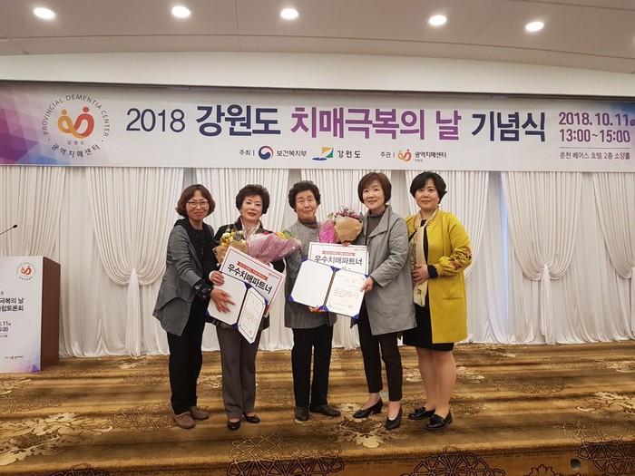 두 사람은 ‘제11회 치매극복의 날 기념’ 유공 우수 치매파트너로 선정돼 이번 시상식에서 강원도광역치매센터장상을 수상했다.