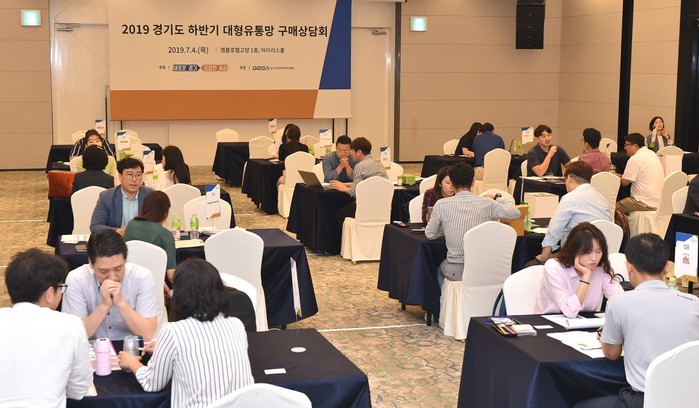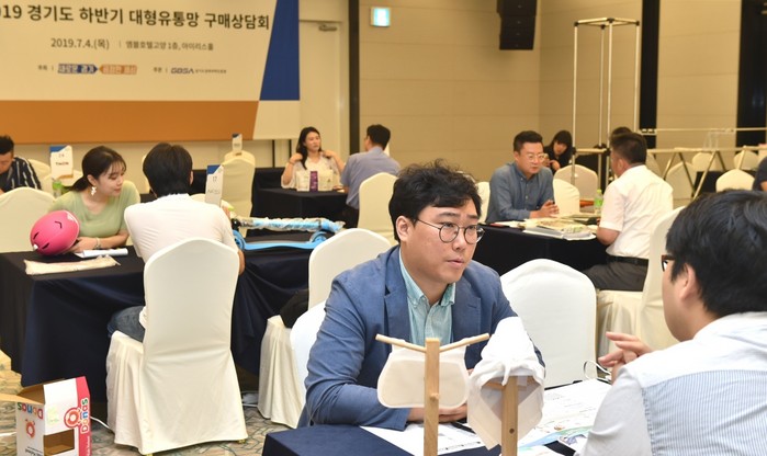 | ▲ 지난 4일 엠블호텔 고양에서 열린 2019 하반기 대형유통망 구매상담회에서 대형유통망 MD들과 도내 중소기업들이 1:1 구매상담을 진행하고 있다.(경기도 제공) |