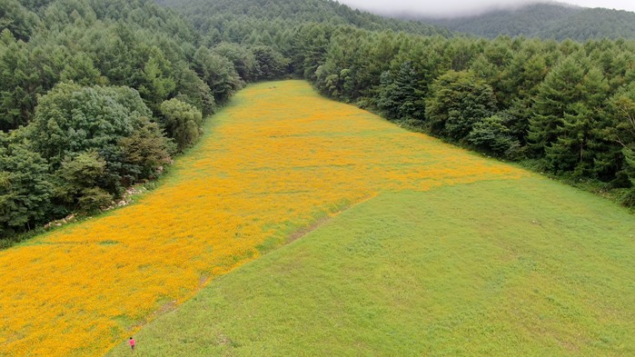 [로컬세계 박상진 기자]강원도 태백시 문곡소도동 행정복지센터와 문곡소도동 주민자치위원회는 올해 시범사업으로 유일사 주차장 주변 부지 1만2000여 평을 활용해 대규모 황화 코스모스 꽃밭을 조성했다고 17일 밝혔다.