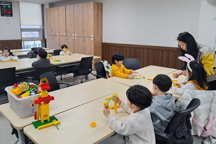 ▲ 용인특례시 기흥구 동백2동 주민자치센터의 창의과학 강좌에 어린이들이 참여하고 있다. 용인시 제공 |