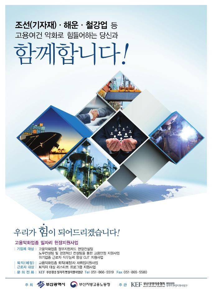 이번 사업은 조선·해운업 등 고용 위기에 대응하고자 부산상공회의소에서 이미 시행 중인 ‘고용안정특별지원센터 운영사업’에 이어서 고용노동부로부터 전액 국비 지원을 받아 부산경영자총협회가 주관해 수행하며 올 10월부터 12월까지 약 3개월 동안 이뤄진다.