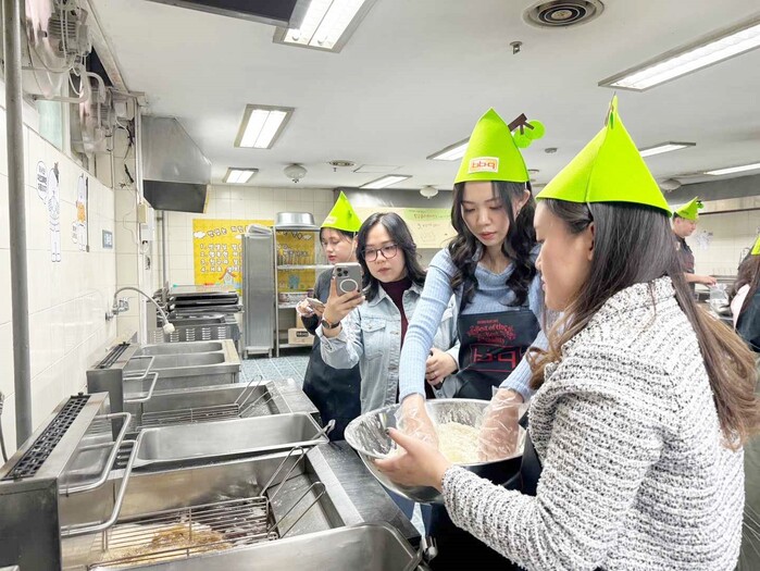 패밀리 교육현장, 시설, 이론 교육 등 인프라 참관…황금올리브 치킨 등 실습 체험도 진행