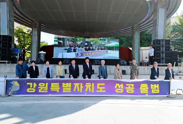 이번 행사는 오는 11일 강원특별자치도 출범을 맞이하여 대내외 경축 분위기 조성 및 시민화합을 위한 행사로 마련됐으며, 태백시 기관·사회단체·시민 등 1,000여 명이 참석한 가운데 시장, 시의장, 관내 기관·단체장 등이 함께 강원특별자치도 성공 출범을 축하하는 폭죽 발사 퍼포먼스로 기념식의 대미를 장식했다.