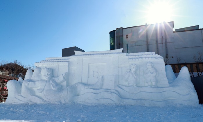문화광장에 설치된 천제단 모형 눈미끄럼틀과 복돼지 눈 조각, 황지연못 전설을 주제로 한 황부자 이야기 눈조각, 얼음 이글루도 눈길을 끈다.