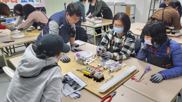 1기신도시 특성에 맞춰 직접 노후주택의 간단한 수리를 할 수 있도록 주민 대상으로 ‘간편 집수리교육’도 시행 중이다. 지난 16일 마무리된 집수리교육에서는 일상에서 스스로 할 수 있는 공구사용법과 수전교체 방법, 실리콘 사용방법 등에 대해 교육을 진행했다.