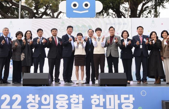 [로컬세계 부산=맹화찬 기자] 25일 오후 부산 남구 대연동 '남부 창의마루'에서 수백명이 참석한 가운데 열린 ‘2022년 창의융합 한마당 개막식’에 하윤수 부산시교육감과 박재호(남구을, 민주당), 박수영(남구갑, 국민의힘) 국회의원, 오은택 남구청장 등 내빈과 학생, 학부모, 일반시민들이 대거 참석했다.