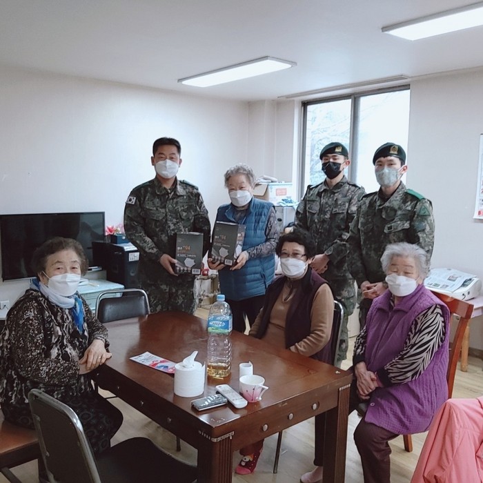 더불어, 동대장과 상근병은 작년 7월과 9월에는 지역 내 6.25 참전용사분들을 찾아 목욕봉사 활동과 환경정화 활동을 펼치는 등 ‘코로나19’의 확산방지를 위한 노력뿐 아니라 이전부터 지역사회를 위해 지속적인 봉사활동을 실시하였으며 이러한 봉사활동은 주변 부대원들에게 많은 귀감이 되고 있다.