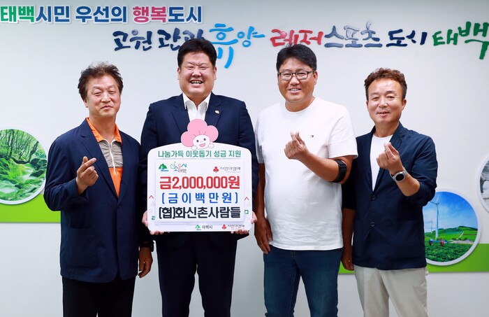 [로컬세계=박상진 기자]강원 태백시는 지난 18일 협동조합 화신촌사람들이 시에 이웃돕기 성금 200만원을 기탁했다고 19일 밝혔다.