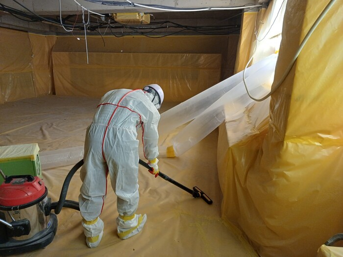 ▲ 용인특례시가 여름방학 중 학교 석면해체작업을 진행하고 있는 학교를 대상으로 이달 말까지 현장 지도·점검을 한다. 사진은 학교 석면제거 작업 현장. 용인시 제공 |