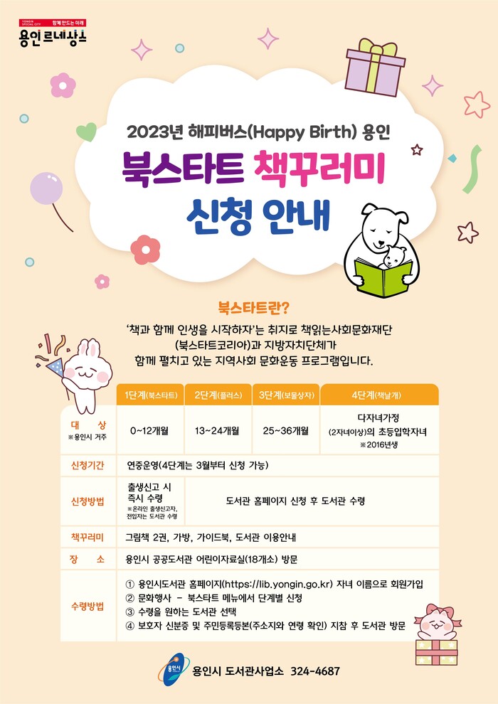[로컬세계=김병민 기자]경기 용인특례시가 0~36개월 아기에게 생애 첫 책 꾸러미를 선물한다.
