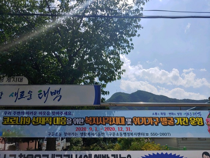 [로컬세계 박상진 기자]강원 태백시 구문소동은 오는 12월 31일까지 코로나19 선제적 대응을 위한 복지사각지대 및 위기가구 발굴 기간을 운영한다고 7일 밝혔다.