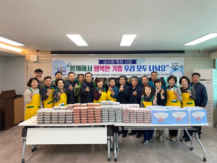 밑반찬 나눔 지원사업은 삼수동 특화사업으로 삼수동 지역사회보장협의체가 주최하고, 삼수동 주민자치위원회를 비롯한 단체의 후원을 받아 삼수동의 저소득 취약계층 60가구에 밑반찬을 만들어 제공하는 사업이다.