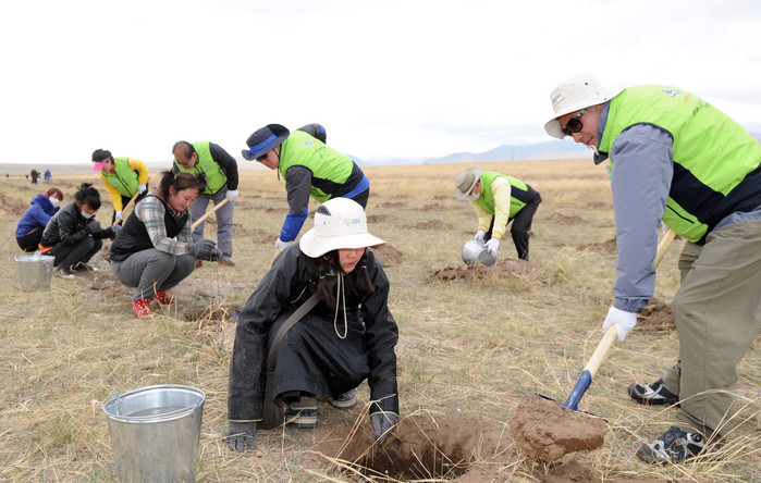 몽골 정부, (사)푸른아시아와 협약을 체결한 수원시는 지난해까지 100만㎡ 넓이 대지에 포플러, 차차르간, 우흐린누드 등 나무 10만 그루를 심어 숲을 조성했다.