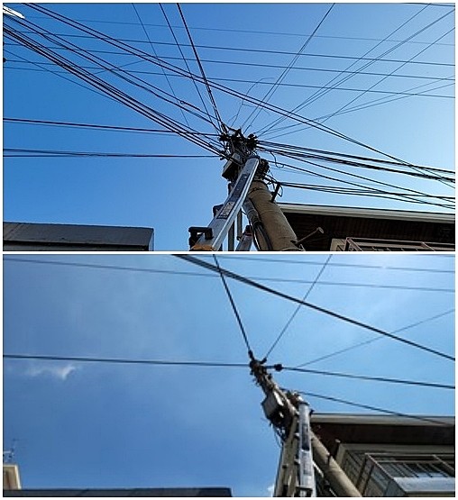 ▲공중케이블 정비 전(상), 정비 후(하) 사진. |