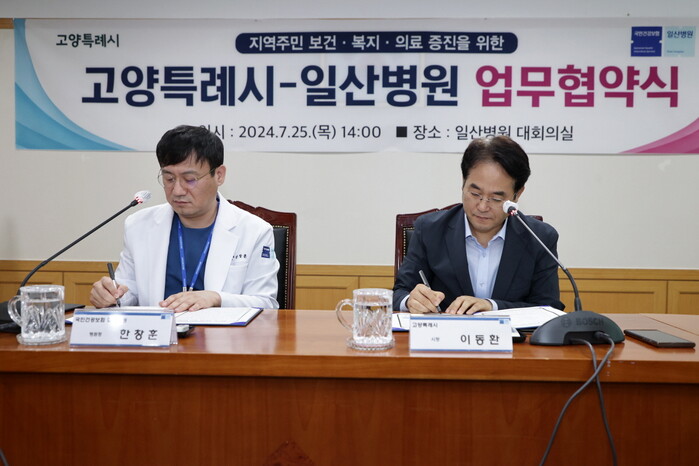 [로컬세계=임종환 기자]경기 고양특례시는 지난 25일 국민건강보험공단 일산병원(병원장 한창훈)과 지역의 건강 취약계층을 위한‘보건·복지·의료 통합서비스 제공’업무협약을 맺었다고 26일 밝혔다.