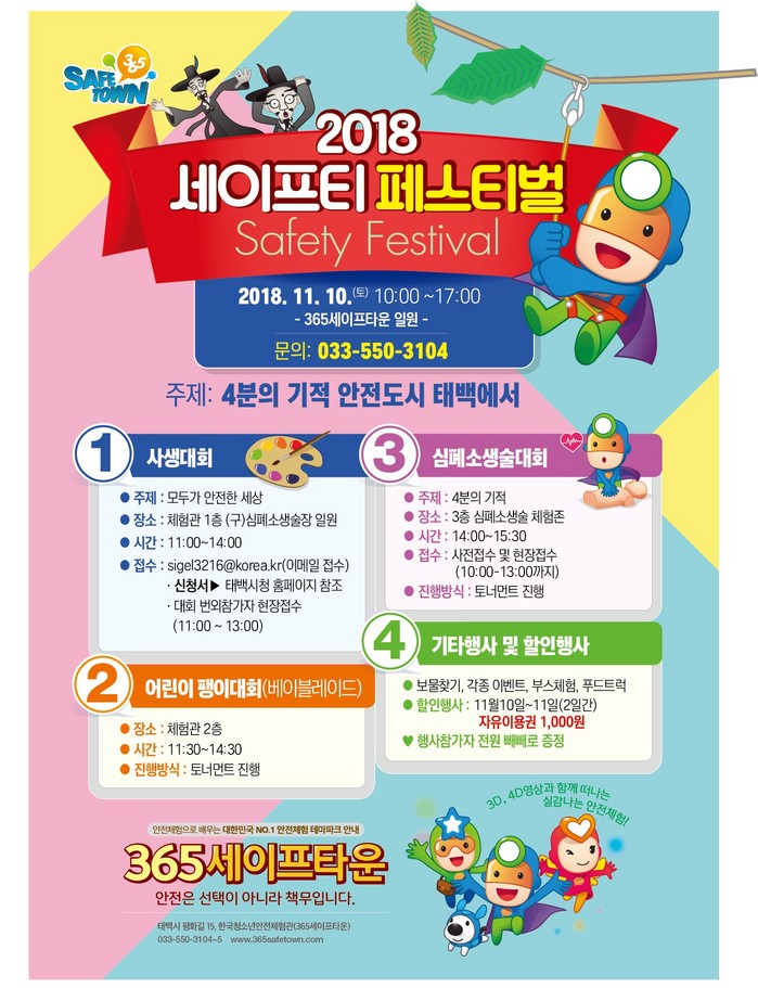 강원도내 유일의 안전체험관인 365세이프타운에서는 ‘4분의 기적 안전도시 태백에서’를 주제로 누구나 참여할 수 있는 안전 페스티벌이 벌어진다.