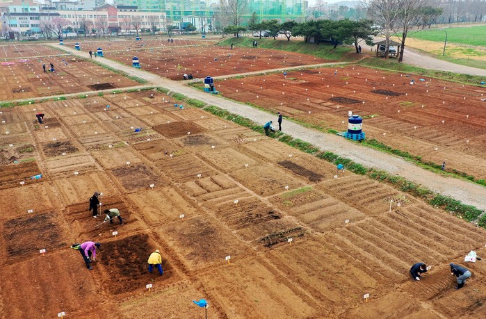 올해는 ▲탑동 시민농장 1500구좌(球座)(각 16㎡) ▲두레뜰 공원 140구좌(각 10㎡) ▲물향기 공원 180구좌(각 10㎡) ▲청소년 문화공원 80구좌(각 10㎡) 등 4개소 1900구좌 텃밭을 배정한다. 1세대당 1곳만 신청할 수 있다.