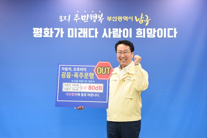 [로컬세계 맹화찬 기자]박재범 부산 남구청장은 김만수 부산남부경찰서장의 지명을 받아 지난 13일 ‘굉음 유발 자동차·이륜차 소음 허용기준치 하향 건의’ 국민청원 동참을 위한 릴레이 챌린지에 참여했다.