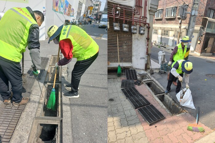 ▲ 작업 중인 동대문구 ‘빗물받이 지킴이’ / 동대문구 제공 |