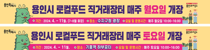 장터는 11월 30일까지 기흥역 하부공터에서 매주 토요일, 수지구청 광장에서 매주 월요일(7~8월은 휴장) 오전 10시부터 오후 4시까지 운영한다.