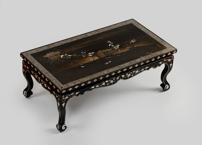 ‘수원 방화수류정 자개상’은 수원화성용연과 방화수류정, 화홍문을 소재로 만든 것으로 상판의 회화적 문양이 정교하고, 상의 측면부와 다리에도 섬세한 문양을 시문해 사료적 가치가 높다.