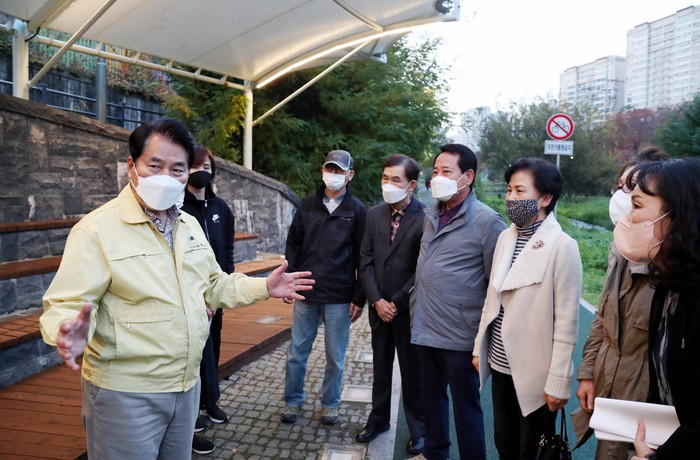 앞서 지난 6일에는 산책로 폭이 좁다는 민원이 제기된 성복천 산책로(수지구 성동복 일대)를 찾아 주민들과 1시간 가까이 걸으며 문제를 살폈다.