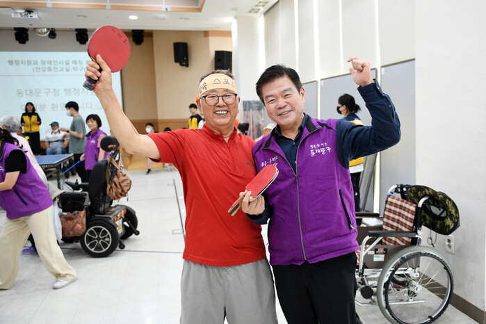 지난 27일에는 행정국 행정지원과 직원들이 동대문장애인종합복지관에서 운영하는 탁구교실 프로그램에 봉사자로 참여했다. 이 날은 이필형 동대문구청장이 직접 봉사활동 프로그램에 참여하고, 장애인과 직원들을 격려했다.