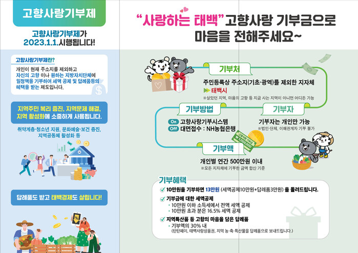 [로컬세계=박상진 기자]강원 태백시(시장 이상호)은 내년 1월부터 시행되는 고향사랑기부제 준비에 만전을 기하고 있다고 23일 밝혔다.