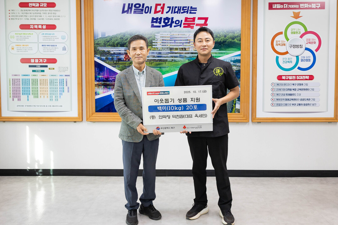 [로컬세계 = 맹화찬 기자] 부산 북구 덕천동 연막창 덕천점이 개업을 맞아 지역사회와 함께 나눔을 실천했다. 북구청은 17일, 연막창 덕천점에서 백미 10kg 20포(총 200kg)를 기탁받았다고 20일 밝혔다.