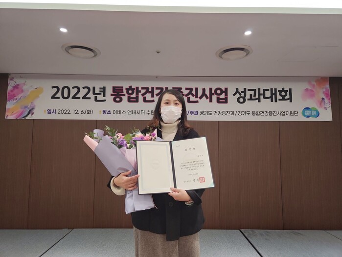 | ▲ 용인특례시 3개구 보건소가 지난 6일 2022년 지역사회 통합건강증진사업 건강생활실천 분야 유공기관으로 선정돼 경기도지사 표창을 받았다.(수지구보건소 손호연 주무관) / 용인시 제공 |