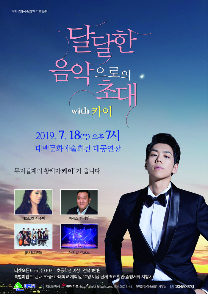 [로컬세계 박상진 기자]강원 태백시가 2019년 한문연 방방곡곡 문화공감사업 우수 프로그램 선정작 ‘달달한 음악으로의 초대 with 카이’ 공연을 개최한다.
