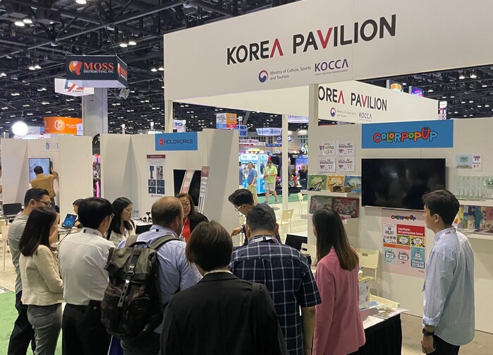 콘진원은 코로나로 위축된 국내 아케이드 게임 및 신기술 융합콘텐츠 기업의 글로벌 경쟁력 강화와 해외진출 지원을 목적으로 3년 만에 한국공동관을 운영했다. 참여 기업은 ▲스마일스퀘어 ▲도모데이터 ▲홀로웍스 ▲에스지엔터테크 ▲비빔블 ▲뷰아이디어 등 6개사로, 이들은 프리로밍 VR부터 디지털 테마파크까지 다채로운 콘텐츠로 참관객의 이목을 끌었다.