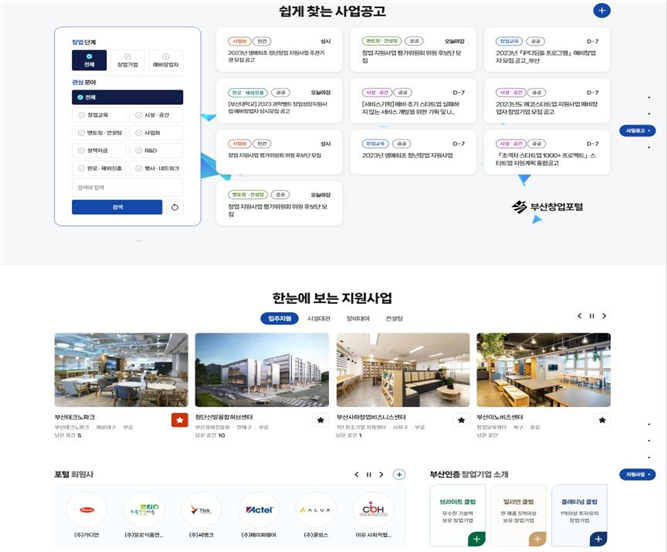 새롭게 운영되는 부산창업포털에서는 ▲창업지원사업 공고 및 신청 ▲입주지원 시설 입주신청 ▲전문분야 컨설팅 신청 ▲장소대관 및 장비대여 신청 ▲대표창업기업현황 소개 ▲자가진단 및 맞춤형 지원사업 추천 ▲스타트업-투자자 매칭 ▲창업유관시설 기반시설 지도(인프라맵) 구현 등의 서비스를 받을 수 있다.