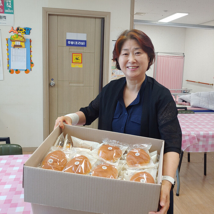 이번에 빵을 나누어주신 빵집의 권해숙 사장은 “작은 나눔이지만 어르신들이 맛있게 드시고 건강하시기를 바라는 마음으로 후원했다. 앞으로도 지역사회를 위해 지속적인 나눔을 실천하겠다”고 전했다.